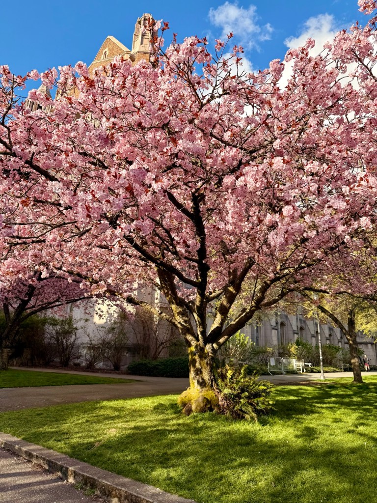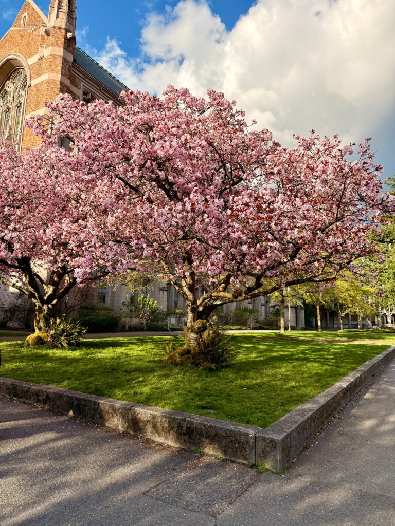 Viewing the cherry blossoms in bloom at the University of Washington is easily one of my favorite annual Seattle traditions. Even with the incredible amount of tourists and other visitors wandering through the quad at UW snapping photos and taking in the grandeur, I always feel a sense of calm when I’m there.